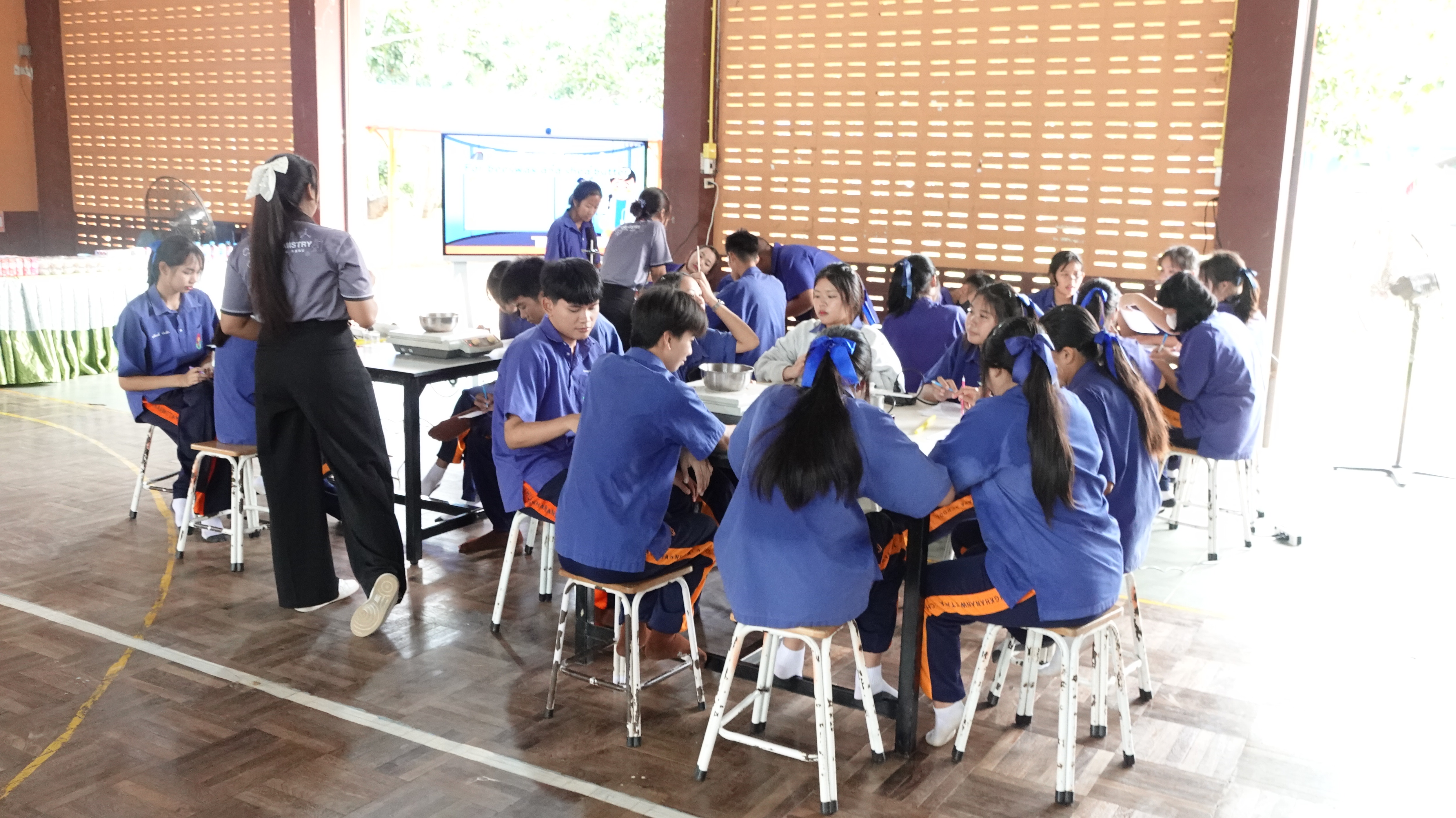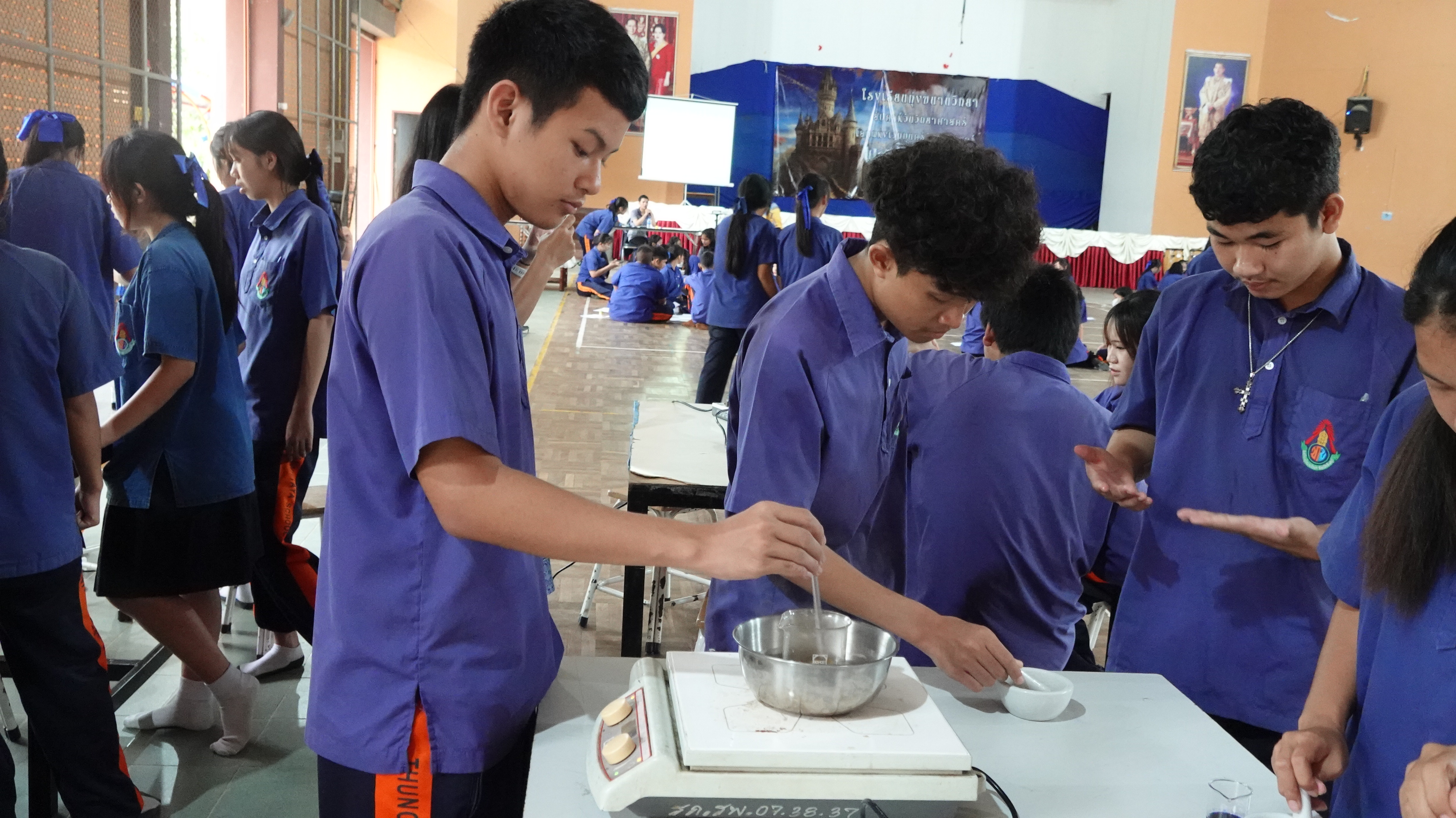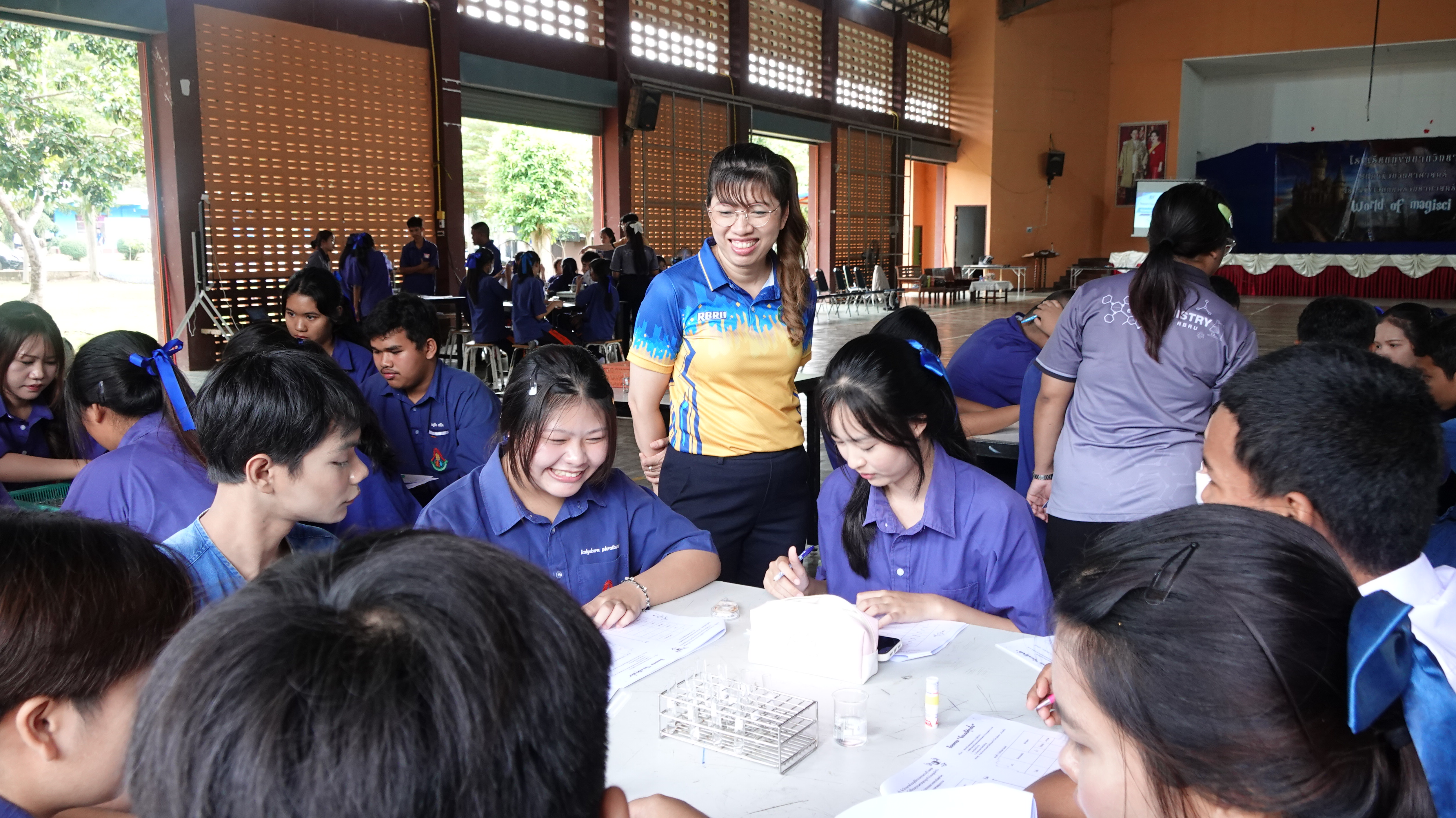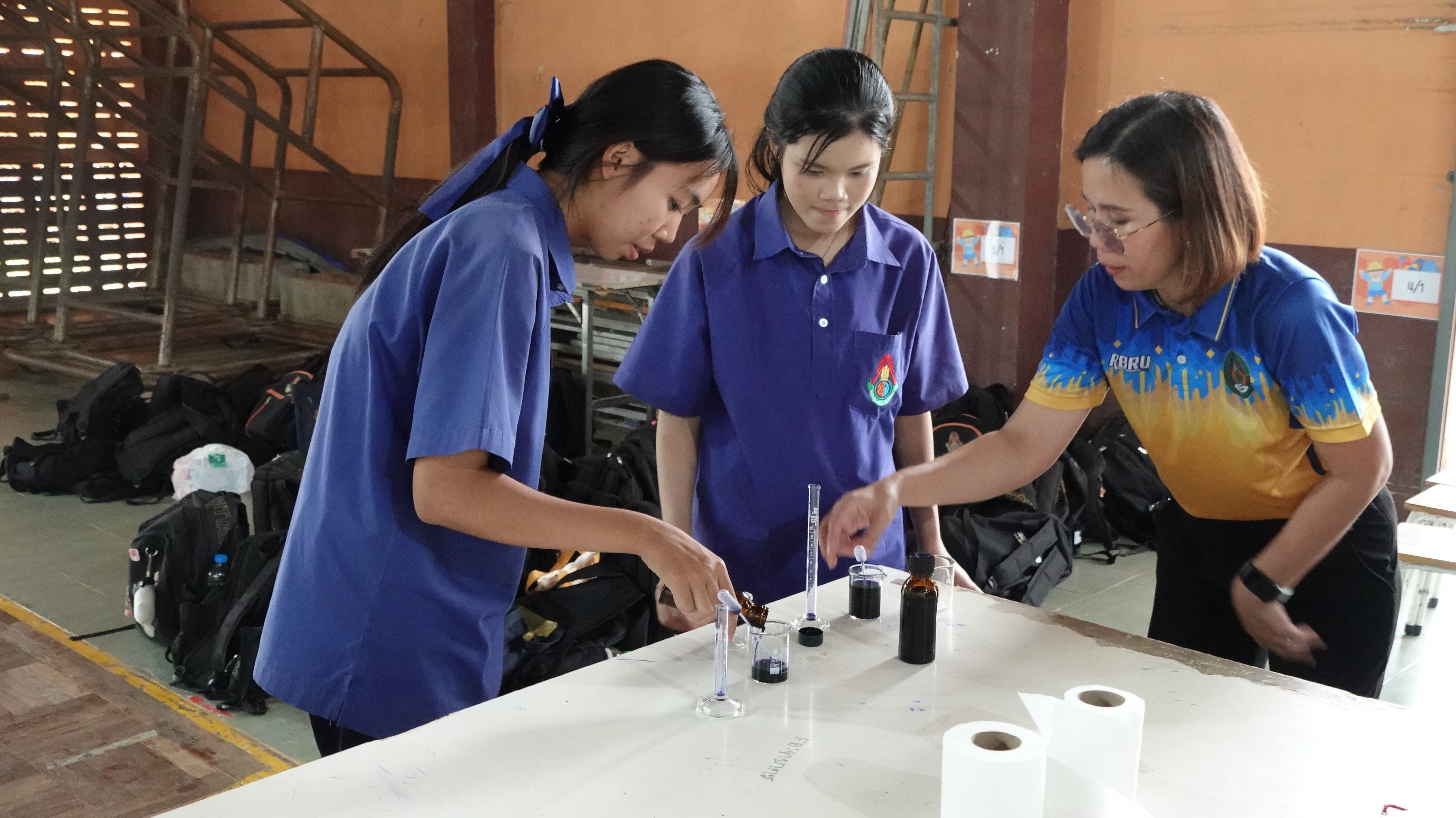 และนักศึกษาสาขาเคมี ทำหน้าที่เป็นผู้ถ่ายทอดความรู้ให้กับนักเรียน ณ โรงเรียนทุ่งขนานวิทยา